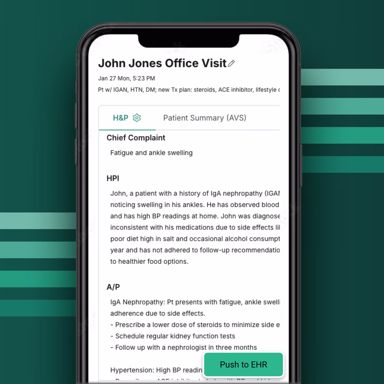 Automatically pull-in structured and unstructured patient data into notes and send notes back to the EHR.